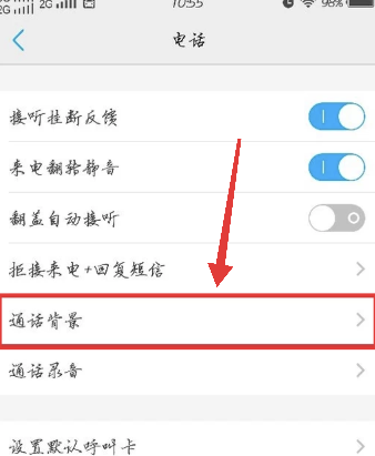 3、进入到电话页面后,点击:通话背景。