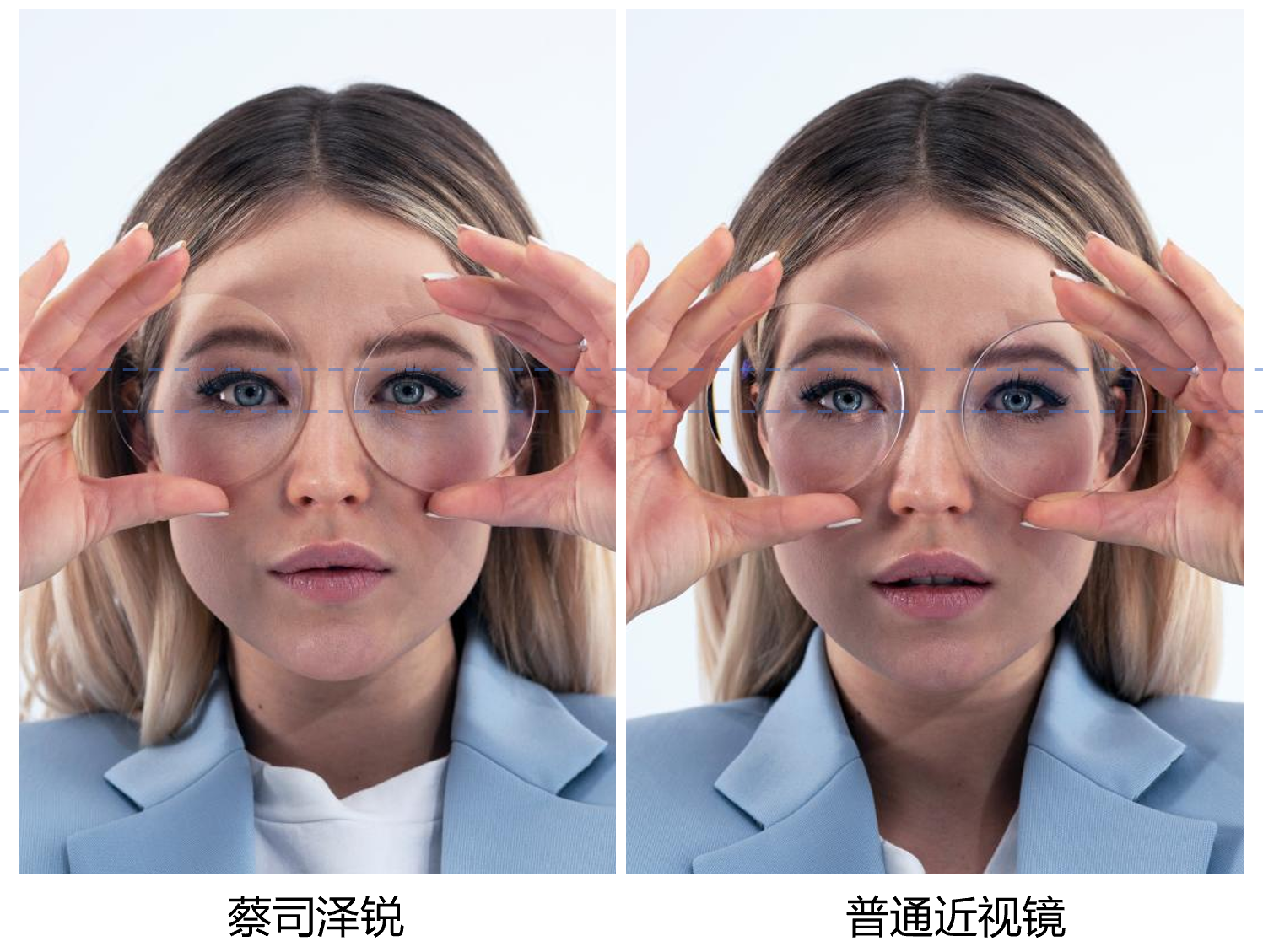 泽锐的镜片更薄、更平,避免了常规近视镜戴上后看起来眼睛会变小的问题,对颜值讲究的必须得泽锐。