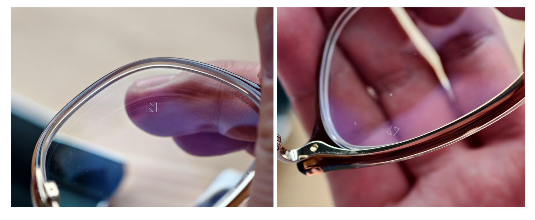 镜片侧45度能看到激光的Z字标签,也是验证的方式之一。