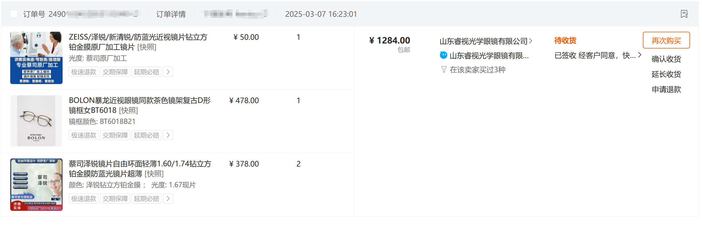 因此,较瘦这次选择暴龙镜框+去医院验光,并要下单前跟商家明确无忧服务具体条例,再下单!
