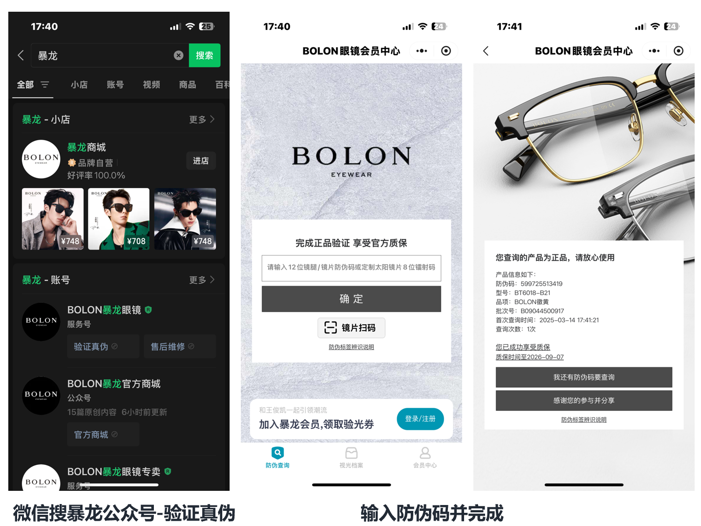 接着是暴龙眼镜的验真,方式是在公众号查询12为激光防伪码,也属于一次性注册机制。
