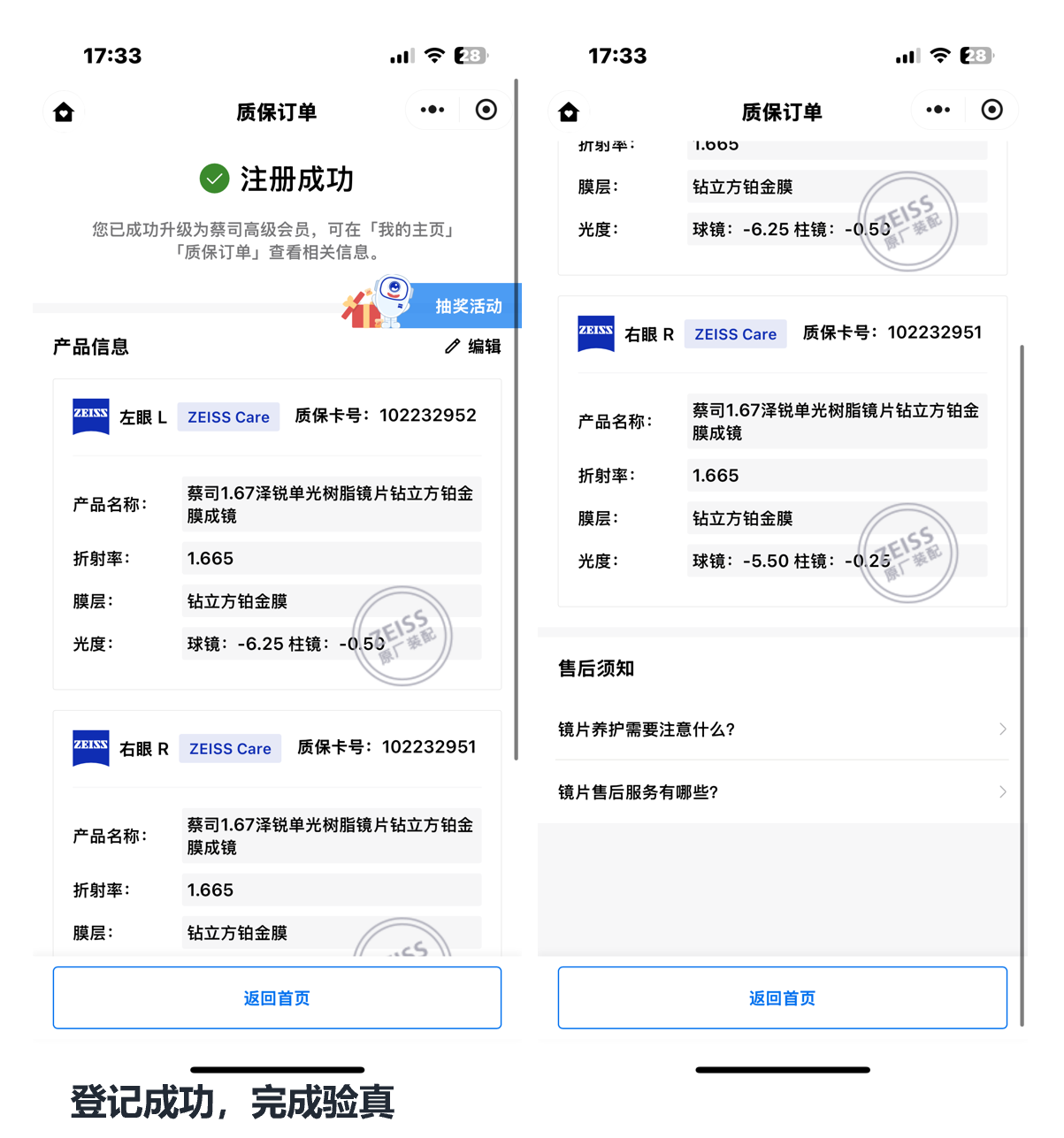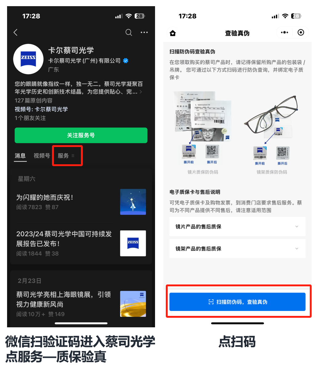 以上就是蔡司扫码验证的过程了~