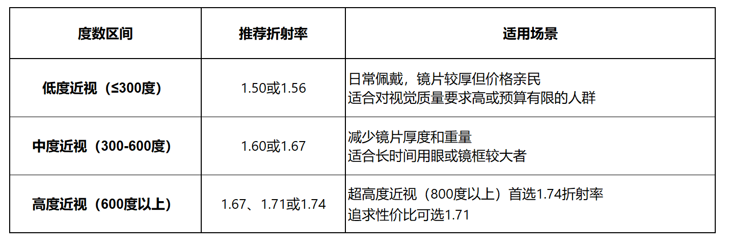 散光度数:散光度数与折射率无直接对应关系,需根据散光轴位、瞳距等综合选择;
