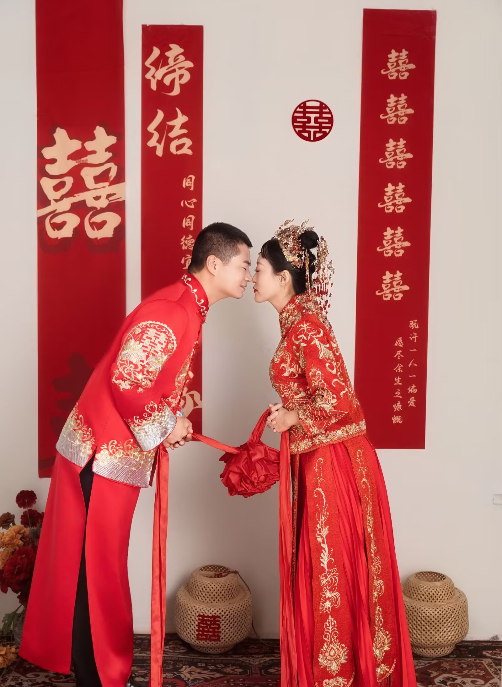 新娘和新郎眼神中透露出满满的幸福和甜蜜,仿佛整个世界都只有他们两个人存在。这一组照片让人感受到他们对彼此的深深眷恋,也为他们的未来生活祝福!愿他们携手共度人生路,相互扶持,相濡以沫。祝福他们新婚快乐,百年好合!