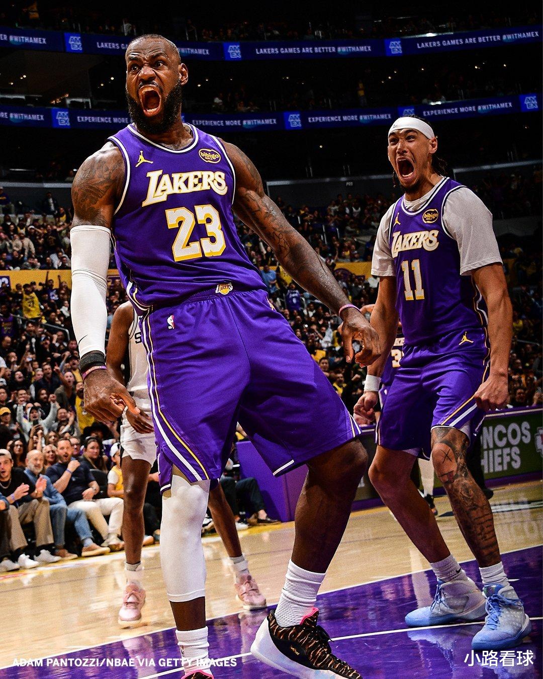 最近两场比赛,詹姆斯场均可以得到24分11篮板7助攻2盖帽,投篮命中率61%,三分命中率44%,罚球命中率75%,真实命中率70%,他在攻防两端正在找回能量,本场比赛的隔扣和追帽是湖人为数不多的亮点,正如前NBA球员丹尼·格林在赛后所说:“现在勒布朗开始找回脚步节奏,身体状态逐渐提升,步伐也更有活力了。他在费城就展现了这种状态,这种势头还在延续。”只要詹姆斯的状态继续好转,加上东契奇和里夫斯,湖人本赛季的下限至少是有保证的。