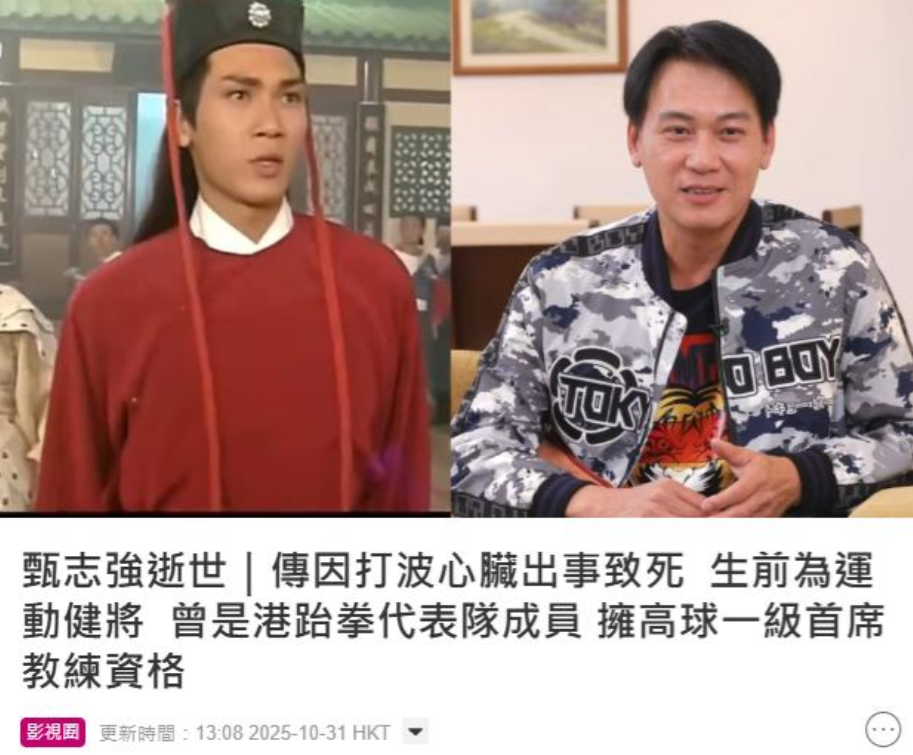 10月31日,素有“最帅展昭”之称的香港演员甄志强突然猝逝,终年59岁,令人扼腕叹息。