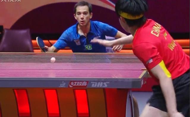 王楚钦面对的,是刚在上个月的世界杯比赛战胜他的老对手,巴西选手雨果。