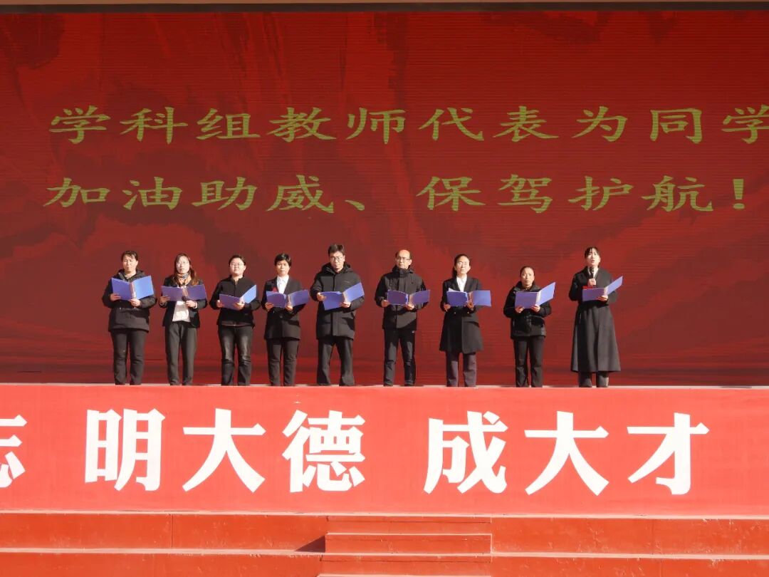 学科教师代表的发言则充满温情与力量。他们承诺将以最饱满的热情、最精准的指导陪伴学生冲刺,“做你们最坚实的后盾,与你们同呼吸、共进退”,朴实的话语赢得全场热烈掌声。