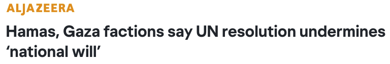 各派还批评该决议完全忽视以色列在约旦河西岸持续实施的军事行动与定居者暴力,也未触及结束以色列占领、消除种族隔离等根本问题,并认为这是对以色列持续向巴勒斯坦展开“灭绝性战争”的国际共谋。