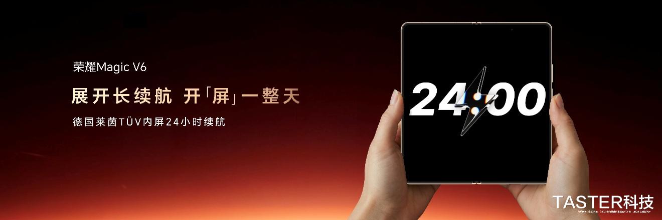在跨代领先的硬核续航能力支撑下,荣耀Magic V6拥有释放更加澎湃性能的实力。荣耀Magic V6配备了行业唯一满血八核第五代骁龙8至尊版旗舰芯片。顶级内核与超强电池相配合,荣耀Magic V6不仅获得德国莱茵TÜV 24小时内屏续航认证,更连续霸榜折叠机续航榜单,全程开屏用,畅用一整天。