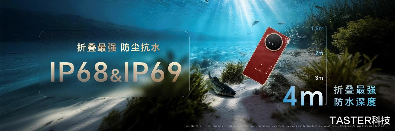 同时,荣耀Magic V6还是唯一通过IP68&IP69防尘防水认证的折叠屏产品,4米防水深度远超行业1.5米平均标准,即使跌落深水区也无需担忧,堪称水下战神。