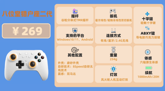 搭配沉浸式高精度L/R扳机、TurboS电竞级非对称双马达,从射击的后坐力、赛车的阻尼到爆炸的冲击都能做到多级真实反馈。新增的全新混合十字键配合八向自由架构设计,方向精度显著提升;ABXY专业游戏按键采用机械级微动结构,触发短、回弹快;并支持一键可编程宏定义操作,让连击、技巧、组合技都能按个人习惯快速调用。整体操控体验的完成度、精度与反馈厚度,已经彻底超出百元定位,接近千元级电竞旗舰的实战表现。