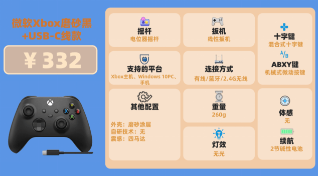 款九:微 软X box磨砂黑+USB-C线款游戏手柄