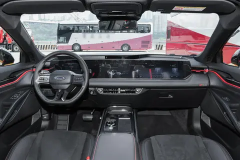 车机系统用的是SYNC+2.0智行互联系统,界面逻辑清晰,语音指令反应迅速。它不仅能识别普通话,还能识别很多方言,这对于不同地区的用户来说非常友好。而且,它还支持三指飞屏转移功能,可以将信息在不同屏幕之间快速切换,非常实用。内饰的材质和装饰也很有讲究,大量使用了软包材质,搭配铝合金饰条和钢琴烤漆面板,既豪华又舒适。座椅是麂皮和翻毛皮材质混搭的,靠背和边缘还有缝线点缀,上面还有ST-Line刺绣标识,看着就很有质感。