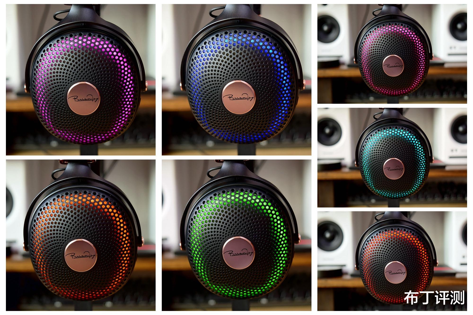 耳机的外侧采用了镂空设计,搭配中间金色的品牌logo,让整体更具时尚感,另外在内部还加入了炫彩灯效,能够有效提升氛围感。
