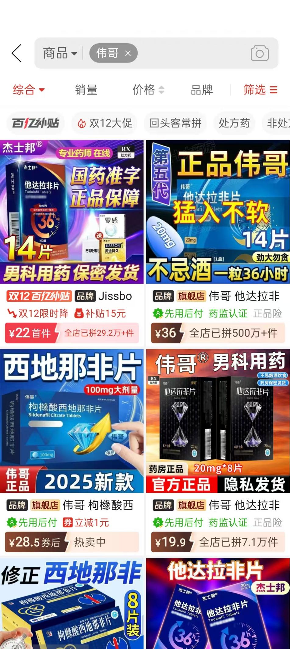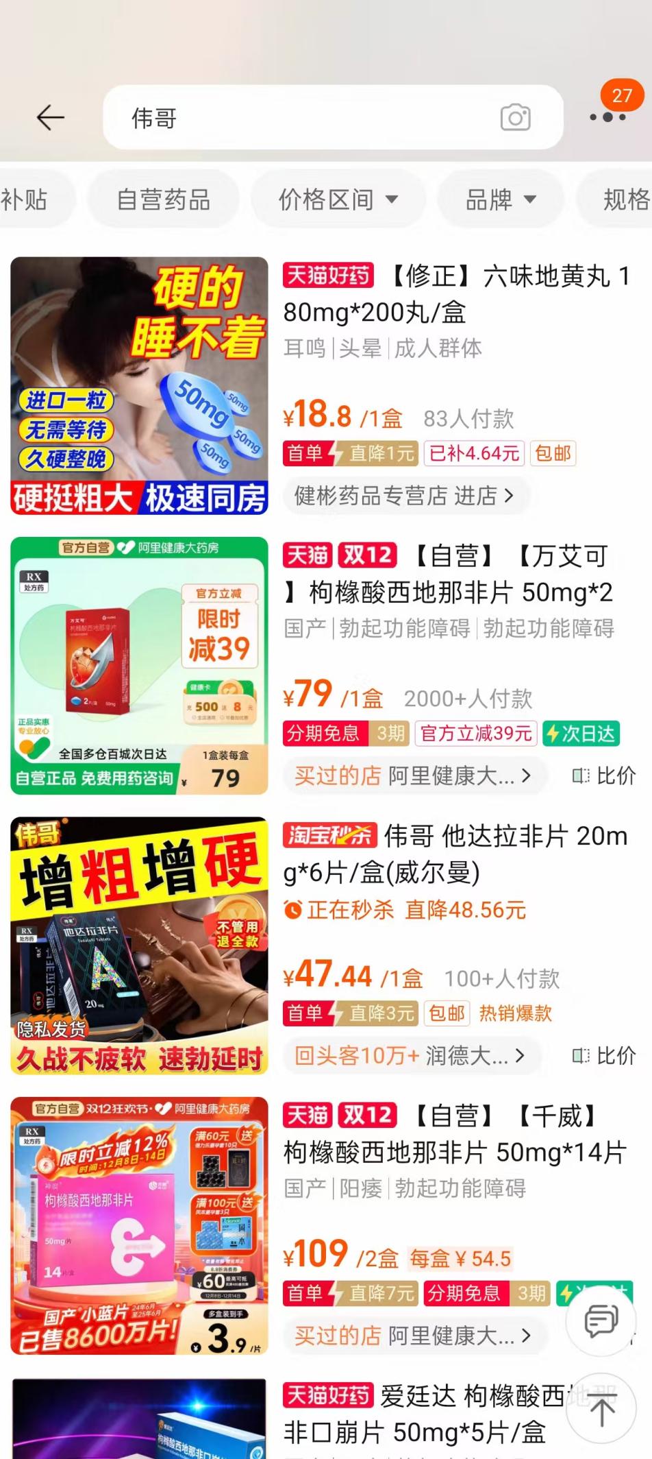 但是,兄弟们,你们去各大电商平台搜一下“伟哥”或者“助勃”试试。