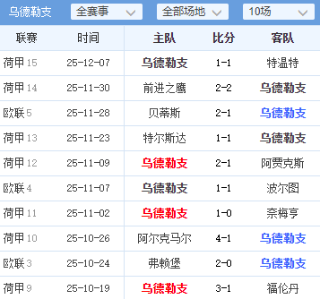 3. 联赛消耗:相比乌德勒支,他们周末多赛一场英超且遭遇惨败,体能和士气可能受到影响。