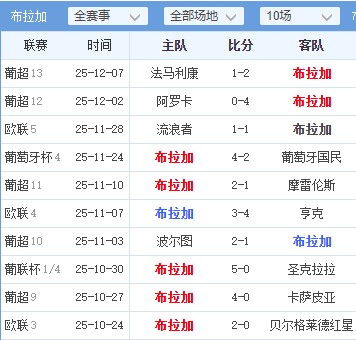 布拉加(客队):状态稳定,目标明确