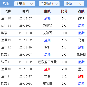 尼斯(主队):深陷泥潭,内忧外患