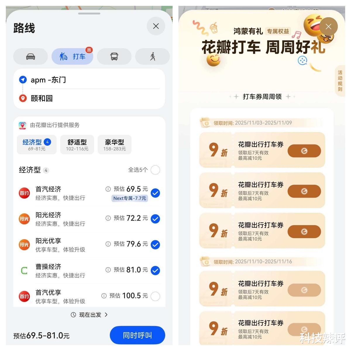偶尔出个门,我也懒得坐地铁和公交。自从我知道花瓣地图每周能领3张9折打车券后,我便经常打开花瓣地图 (Petal Maps) 叫车,它整合了多个平台,叫车很快。重点是领的打车券最高减10元,而且每周完成第3、6、9单还能额外拿5元券,真是打车也能“赚”,你们也快去试试吧~