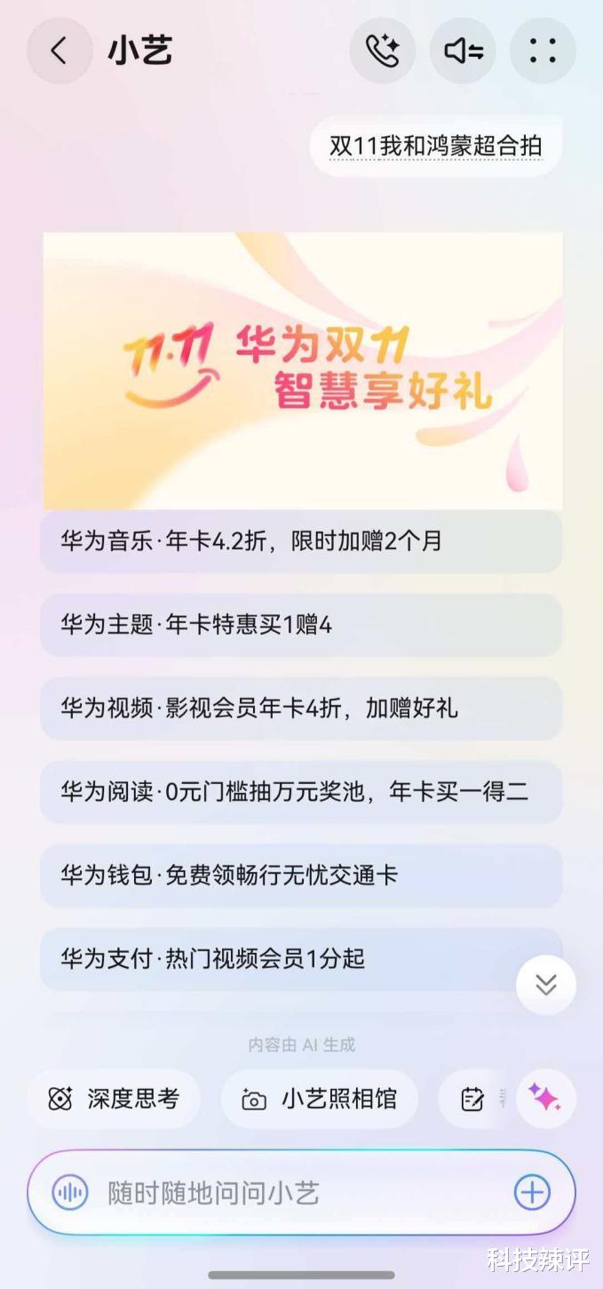 当然,“懒”的最高境界,是查优惠都懒得动手。唤醒小艺说:“双11我和鸿蒙超合拍”,一键领取超多好礼,别提有多爽了!
