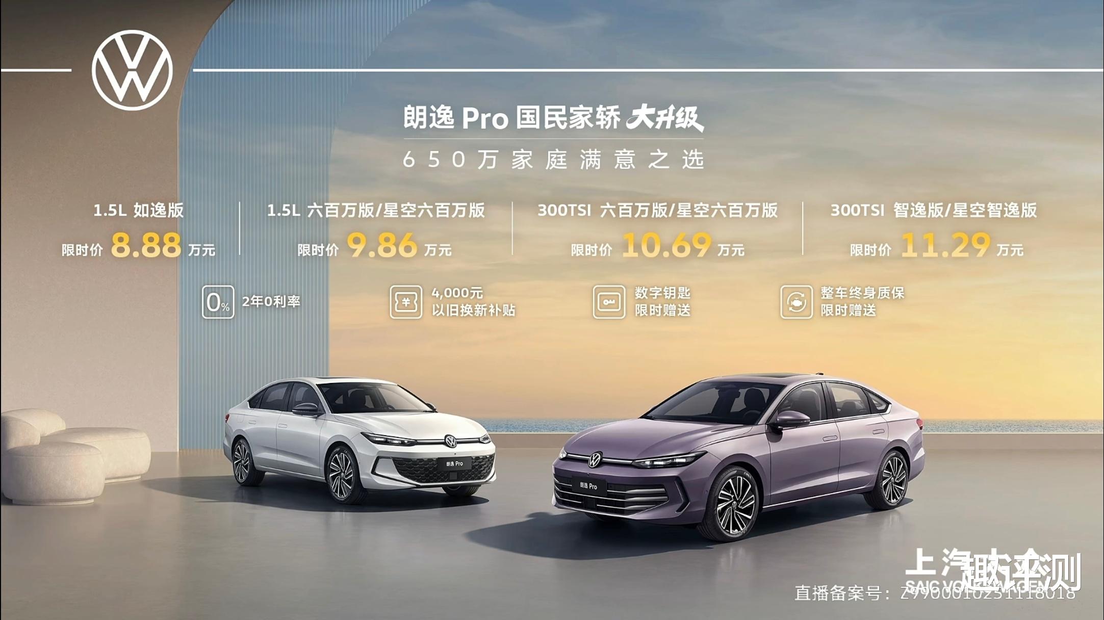 11月17日,备受650万家庭信赖的国民家轿朗逸 Pro正式上市!限时价8.88-11.29万元,同时带来4000元置换补贴、2年0息金融政策、整车终身质保和全系数字钥匙限时免费赠送等惊喜购车权益,助力用户轻松购车,无忧用车。新车以更“大升级、大舒适、大智慧”的全面焕新,重新定义A+级家轿市场标杆,为追求品质生活的中国家庭提供更优选择。