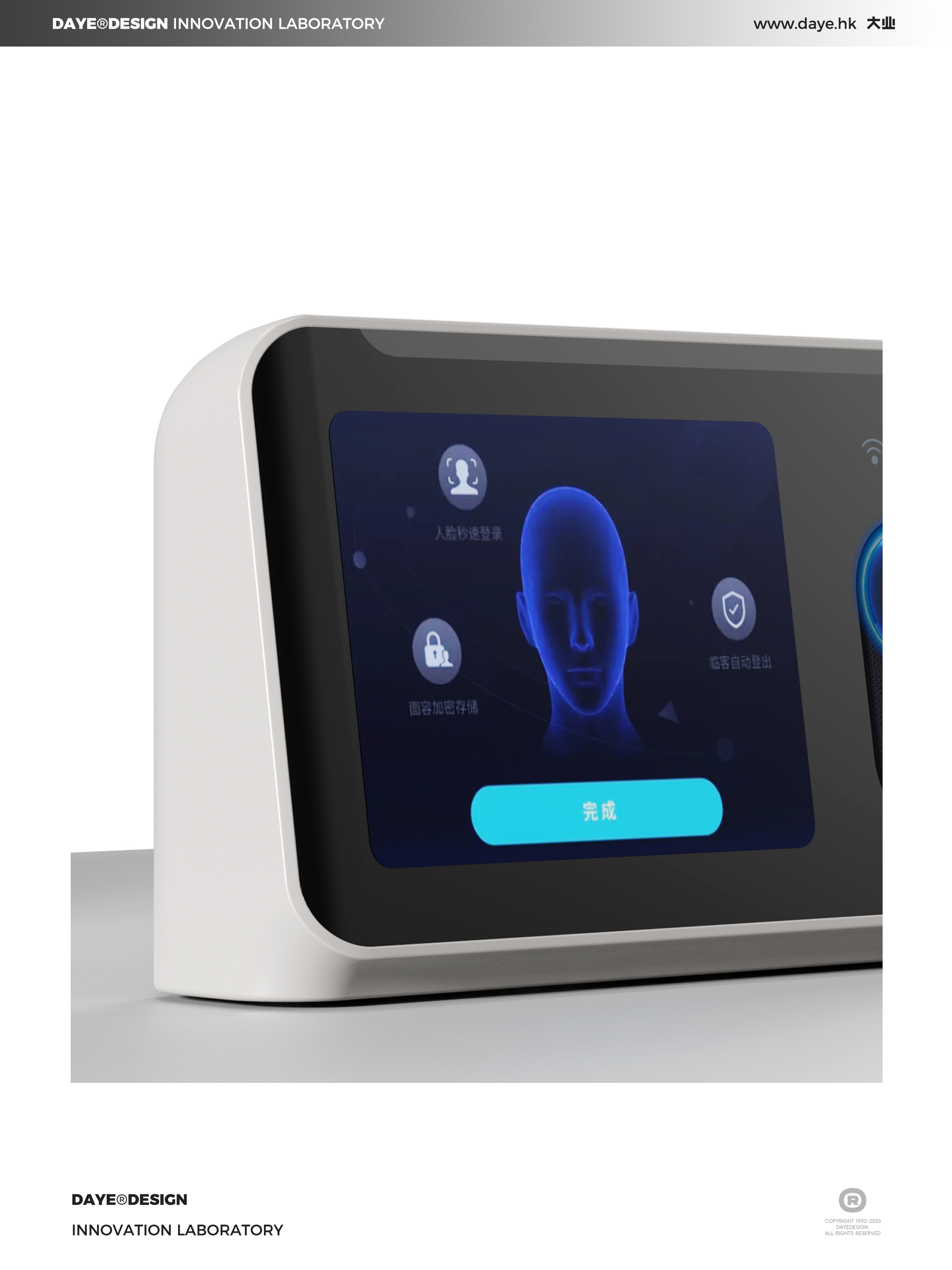 造型上遵循圆角矩形的简约形态,边缘的圆润处理提升设备的亲和感,让其能自然融入各类办公环境;整体尺寸紧凑,既保障了考勤功能的完整性,又符合办公空间 “轻量化设备” 的布局需求。