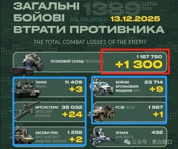 俄乌战争第1389天(2025年12月13日),过去24小时,阴霾的日子出现阳光。