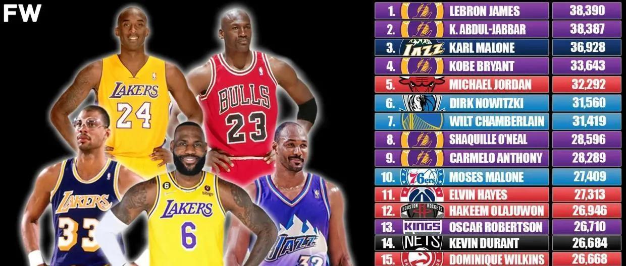 詹姆斯在NBA职业生涯第20个赛季,终于打破了贾巴尔的历史最佳得分纪录。从此以后,NBA球员讨论到要超越历史得分纪录成为新的历史得分王时,只会提到詹姆斯的名字。由于詹姆斯打破了贾巴尔尘封近40年的总得分纪录。为此,美媒也是特意重排NBA历史得分榜前20名,让我们来好好欣赏这份伟大的名单吧。