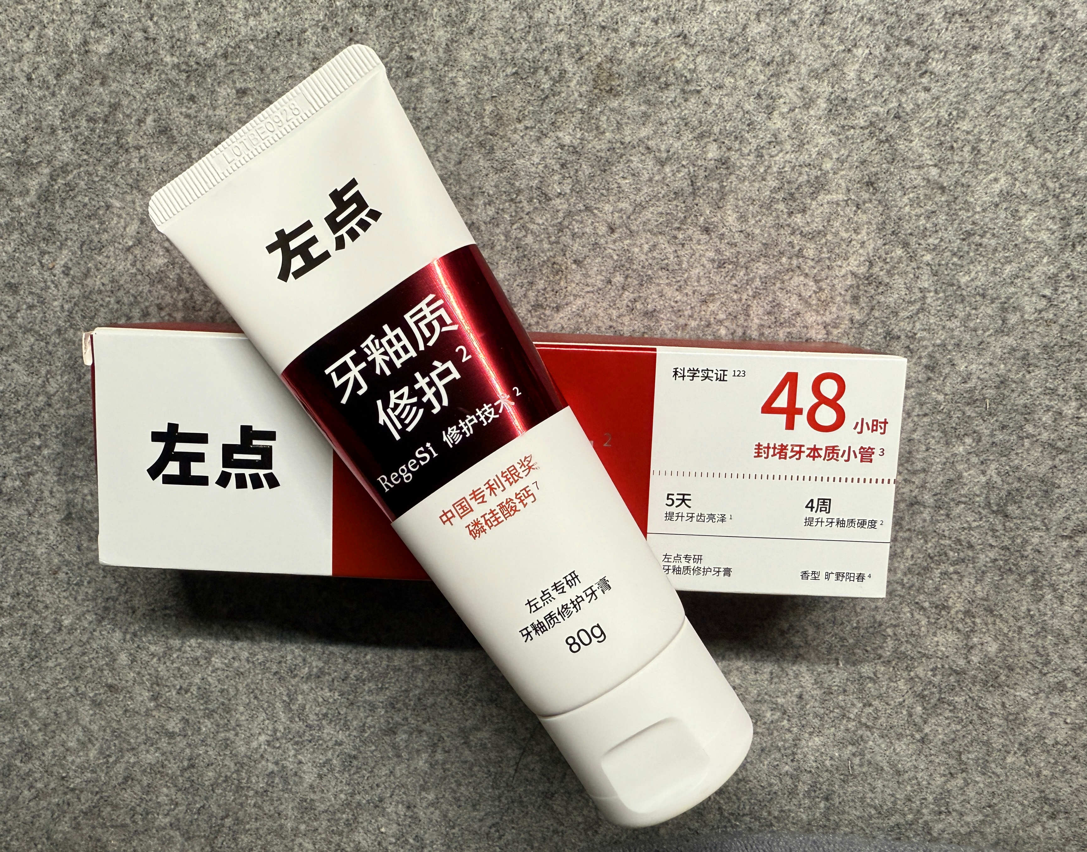 再来说说专研护龈健齿牙膏,这牙膏修护牙釉质的能力简直绝了!它里面添加了专利材料RegeSi再生硅,也就是磷硅酸钙。刷牙的时候,它和唾液里的钙、磷离子一交换,就形成硅凝胶层。这硅凝胶层就像个“小磁铁”,能把钙、磷离子都吸过来,在表面沉积成和牙齿一样的羟基磷灰石晶体,把牙本质小管封得严严实实,牙齿敏感问题轻松解决,搭配左点牙刷一起使用真的太赞了。
