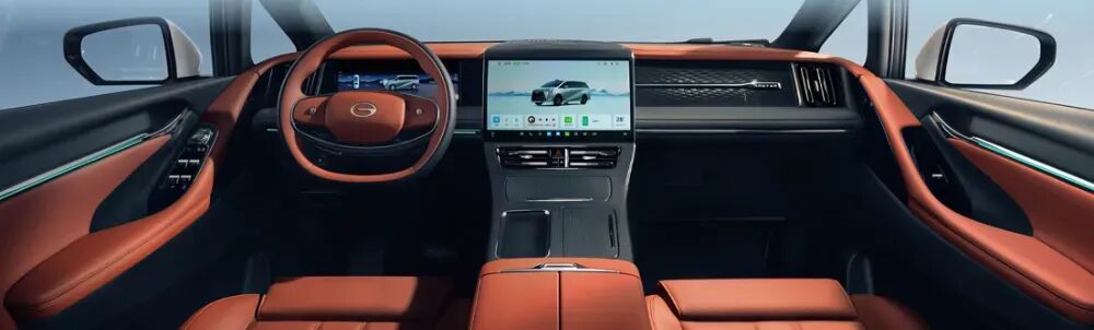 内饰方面,传祺向往M8宗师采用“马会庄园”红棕风格的内饰配色,同时搭配内嵌式的12.3英寸全液晶仪表,双辐式多功能方向盘、电子怀挡换挡机构以及15.6英寸的中控多媒体触控屏;新车型的中控通道区域布局进行了小幅调整,采用横向布局带有翻盖的储物格+纵向布局的单无线充电面板+纵向布局双杯架的一横两纵设计布局。