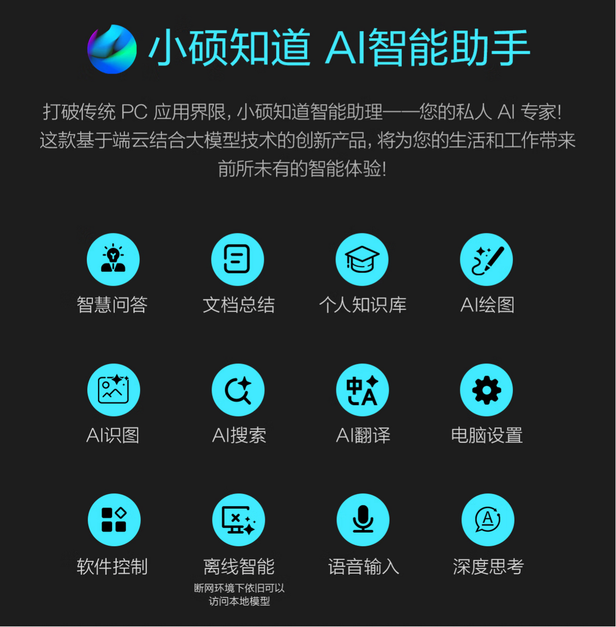身处AI时代,学习任务的高效完成已不再仅依赖硬件性能,华硕无畏Pro16 2025内置“小硕知道”AI智能助手,为你提供全方位的高效支持。它基于端云一体AI大模型,断网时也能继续使用,同时提供了智慧问答、文档总结、AI绘图、AI识图、AI搜索、AI翻译等功能,无论是帮你快速总结文献、翻译外文资料,或是生成创意插图、识别图片信息,“小硕知道”都能随时随地让你更轻松高效完成任务。