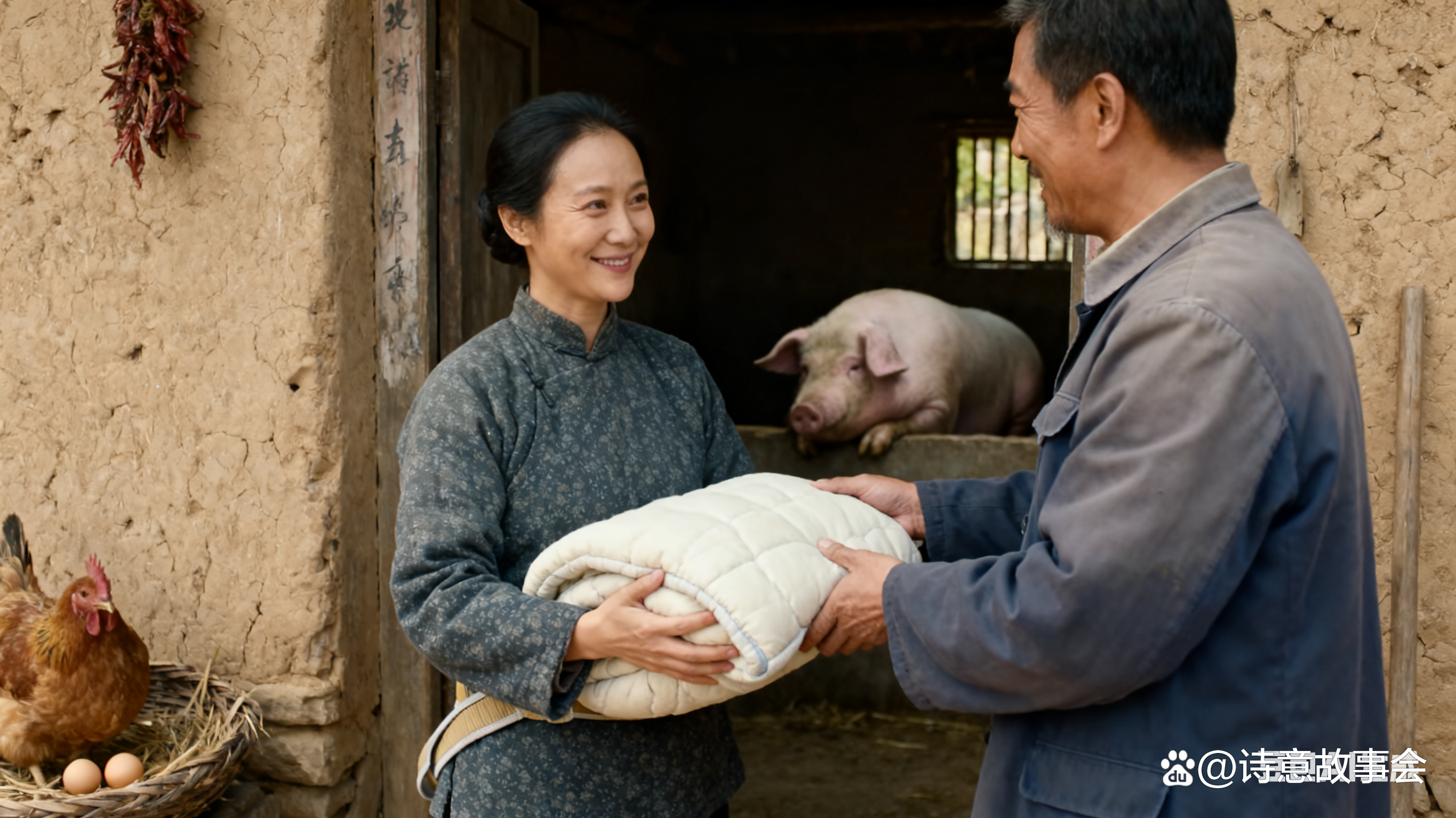 第二天一早,我正蹲在猪圈边发愁,就看见沈秀莲来了,手里还拿着个布包。“秀莲妹子,你咋来了?”我赶紧站起来。她把布包递给我:“长根哥,这是我给你做的护腰,你之前不是说腰不好吗?戴着能舒服点。”我接过布包,里面是个棉护腰,还带着点温热,应该是刚做出来的。我心里一热,说:“秀莲妹子,你太有心了,还让你费心。”