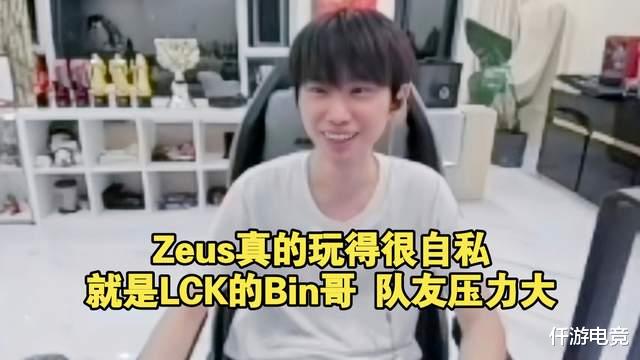 Doinb在直播时解说二路GENG对抗HLE。然后Doinb看到Zeus上单表现不佳时,就说Zeus游戏风格很自私,跟BLG战队的上单选手Bin哥很像。因为不管是Zeus还是Bin,玩法都太独,喜欢优先考虑自己的优势,而不是为了顾全大局,得牺牲自己的小利。这样的打法,会让队友正面压力很大,尤其是打野位置。