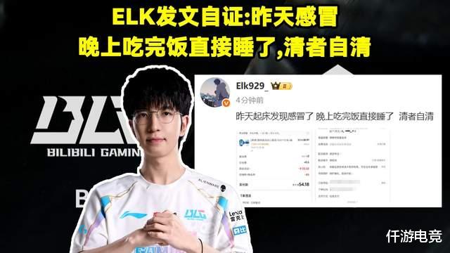 当On被网上舆论洗礼时,其他BLG队友的行为令人大感意外,因为他们都纷纷跟On切割,声称当时自己有事,并没有跟On去参加商K团建活动。BLG战队AD选手ELK发表声明说自己:“昨天起床感冒,晚上吃完饭直接睡了,清者自清。”这局清者自清着实把小编给我逗笑了,看来BLG下路双人组的关系真就一般。