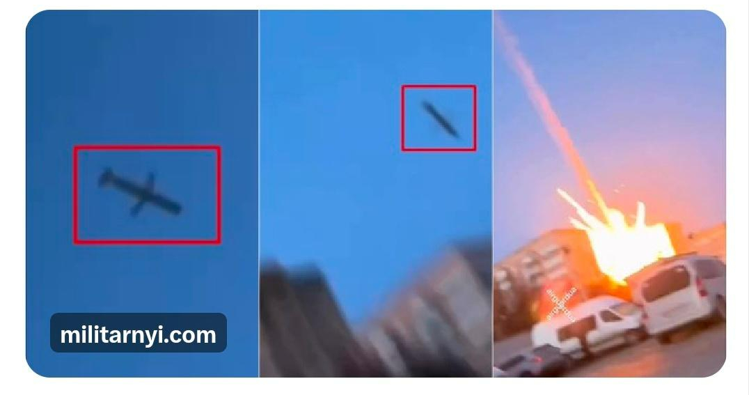 目击者记录到一枚俄罗斯Kh-101巡航导弹对一栋居民多层建筑进行定点打击: