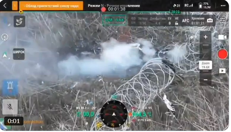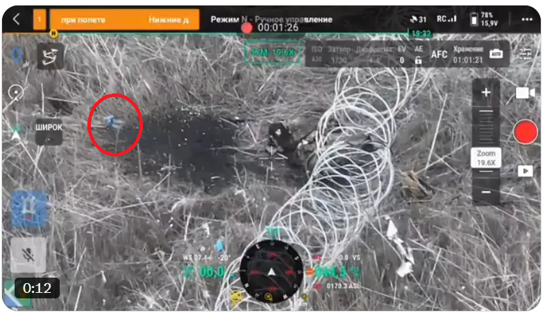 有俄罗斯士兵被铁丝网缠住,但拒绝投降,两次对乌克兰无人机(下图红圈处)竖中指,最后求仁得仁了。