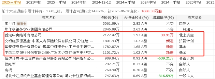 机构动态:三季度前十大流通股东加仓1688万股。其中,北上资金加仓39万股,连续2个季度加仓,合计持股2127万股;险资中国人寿新进1801万股。
