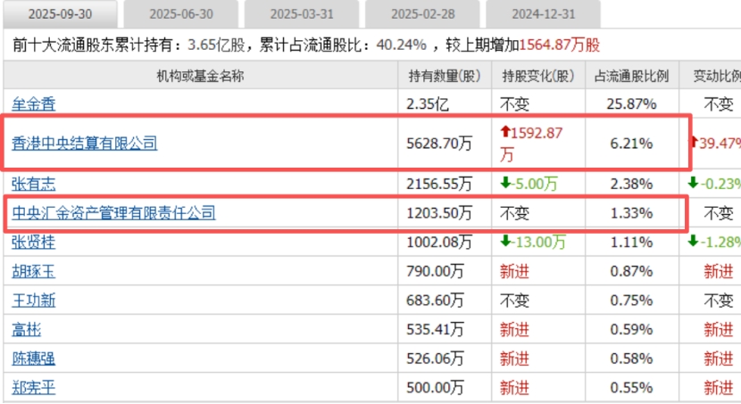 机构动态:三季度前十大流通股东加仓1564万股。其中,北上资金加仓1592万股,合计重仓5628万股;中央汇金重仓1203万股;四大超级牛散新进2351万股。