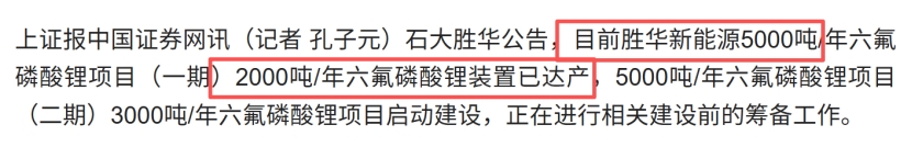 石大胜华证券部,工作人员表示,近期六氟磷酸锂价格变动很快,公司销售部最新反馈的出厂价为11万元/吨-12万元/吨之间,下游客户需求很旺盛。
