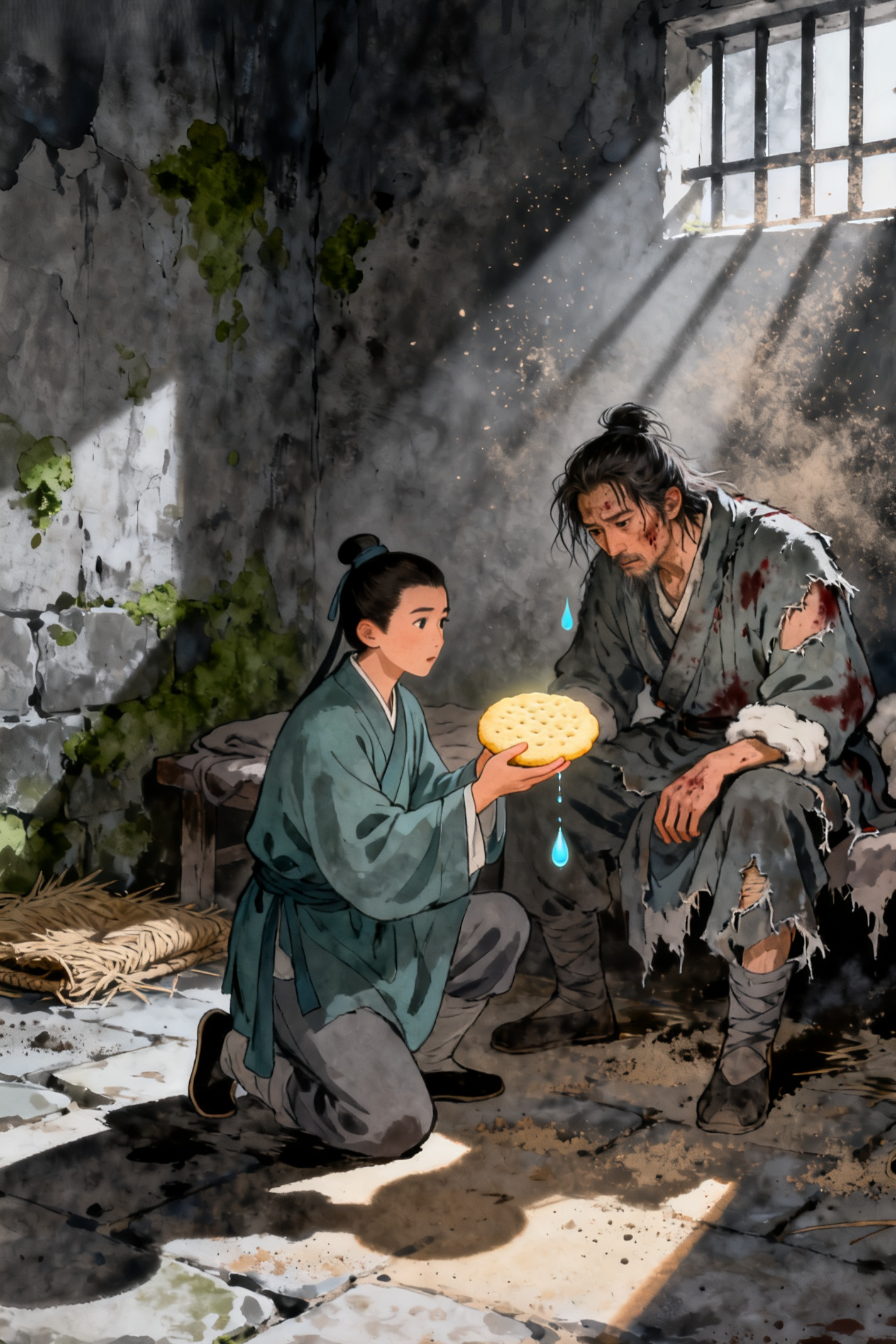 牢门又开了,岳云的手铐脚镣拖在地上,发出“哗啦”的声响。23岁的小伙子浑身是伤,额头上的肿包还渗着血,却笑着扑过来:“爹,我带了麦饼!厨房的老周偷偷给我的!”