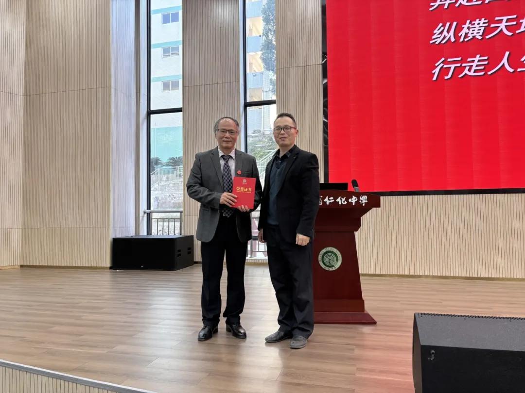 演讲结束后,教研室王彬主任登台,向周建平博士颁发“仁化中学百年校庆特邀讲座嘉宾”荣誉证书。何书记主持仪式,全场掌声经久不息,久久回荡在学术报告厅的上空。
