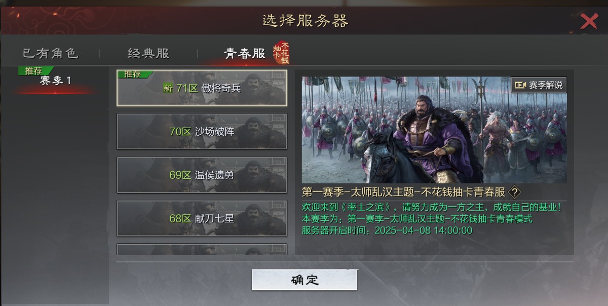 因为人家只是把《率土之滨》S1赛季给端上去做了减法,把宝物、文臣这些后加的系统给删除了,准备给玩家去怀旧。同时,他们把氪金抽卡这个点也给去掉了,让玩家可以用免费的铜钱资源去抽卡,还能保证让你每一抽都保底出五星武将。