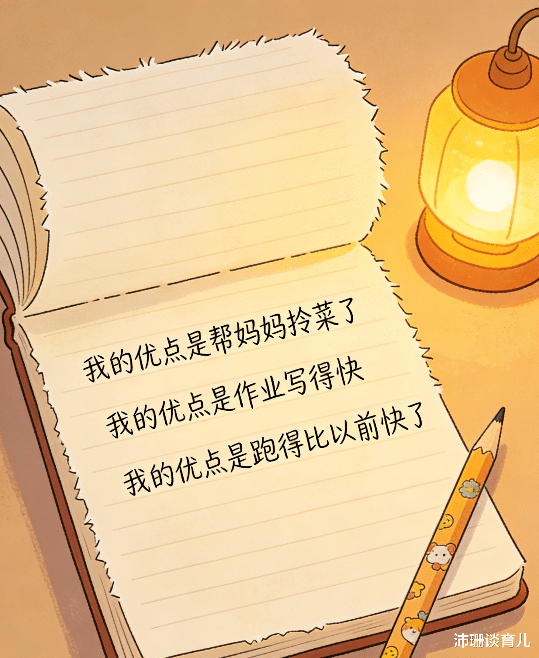 他嘿嘿笑了,笑得特别踏实。后来,我跟儿子一起做了个优点本。每天睡前,我们各自在本子上写一条今天发现的自己和对方的优点。