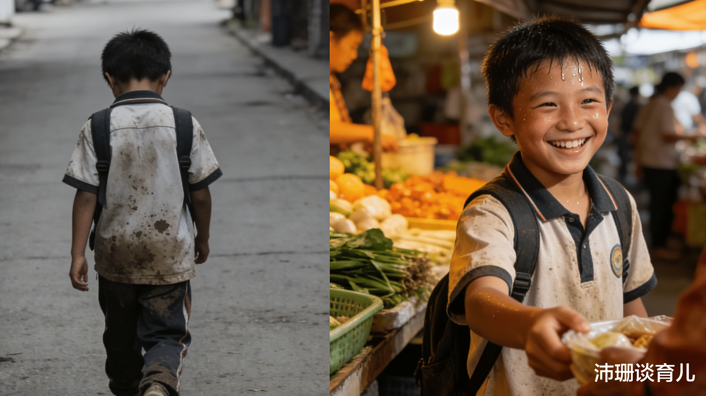 我不能让我儿子走我的老路。第二天,我没去找老师告状,也没去找那几个孩子家长理论。我带着儿子,去了菜市场。