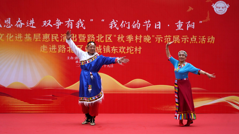 秋风送爽庆重阳,文化惠民暖人心。为丰富农村精神文化生活,弘扬中华民族尊老、敬老、爱老、助老的传统美德,建设宜居宜业和美乡村,10月29日,“感恩奋进 双争有我”“我们的节日·重阳”—— 河北省文化进基层惠民演出暨路北区“秋季村晚”示范展示活动走进韩城镇东欢坨村,将精心编排的文艺节目与浓浓敬老情意送到村民家门口,本次活动由唐山路北区文化体育和旅游局主办,路北区文化馆承办。