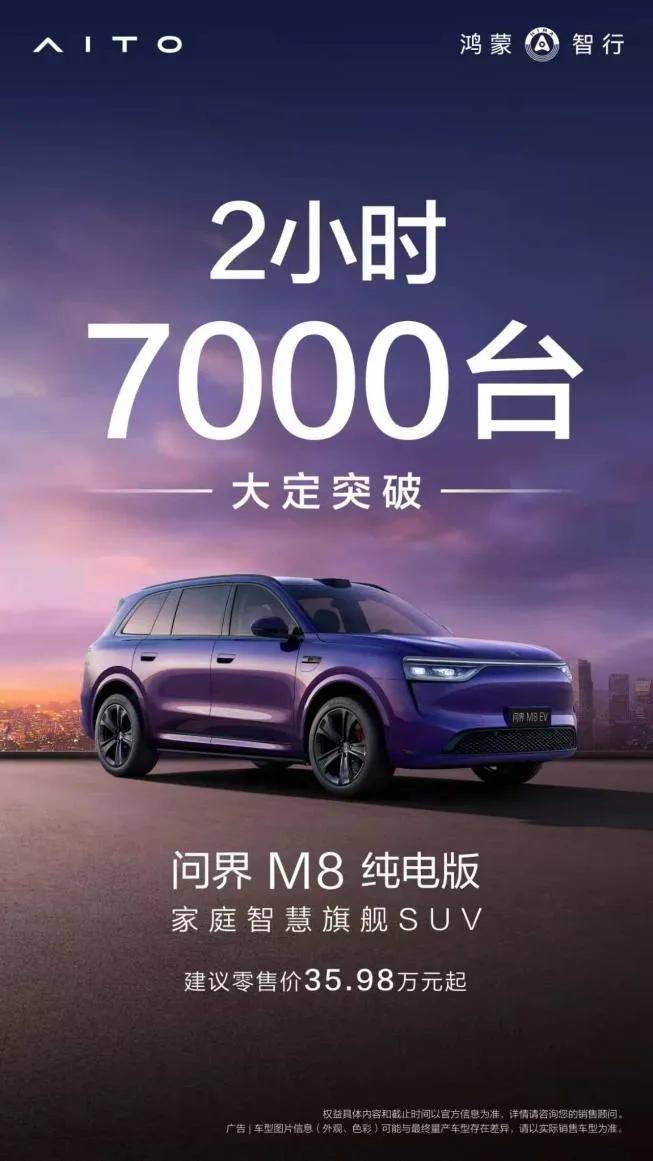 8月25日,问界M8纯电版正式上市,2小时后大定突破7000台。作为问界M8增程版的进阶之作,M8纯电版不仅延续了“八项全能”的核心产品价值,更在智能科技、三电系统、安全性能与用户体验等维度实现了全面跃升。