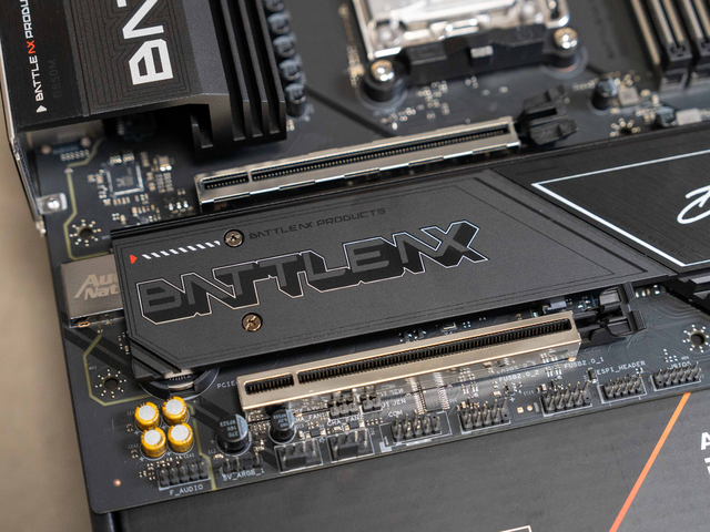 存储方面,在厚实散热马甲下的两个M.2接口均支持便捷的免工具安装,第一条为PCIe 5.0 x4通道,第二条为PCIe 4.0 x4。