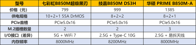 这里整理了一个简单的表格,横比之下非常直观的看出,七彩虹B850M超级黑刃在供电方面真的可以称之为千元内T0级别的主板,性价比方面也是相当突出。