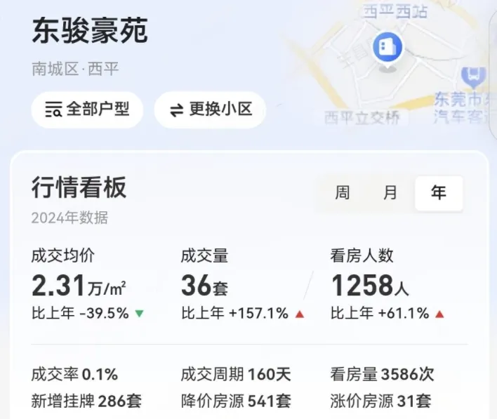 在这一年里小区成交了36套房源,平均每月能成交3套,居南城成交量之首,也是楼市惨淡时期以价换量的样板。